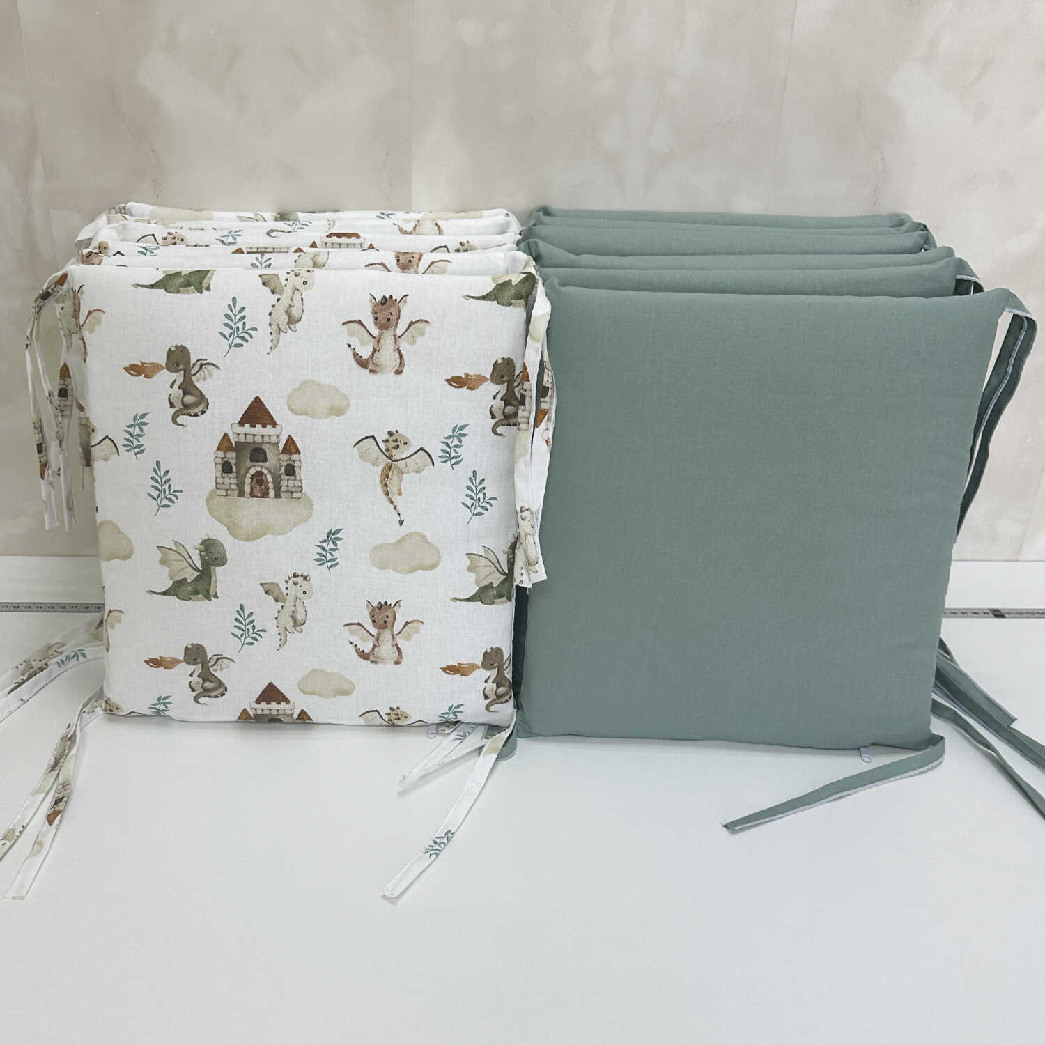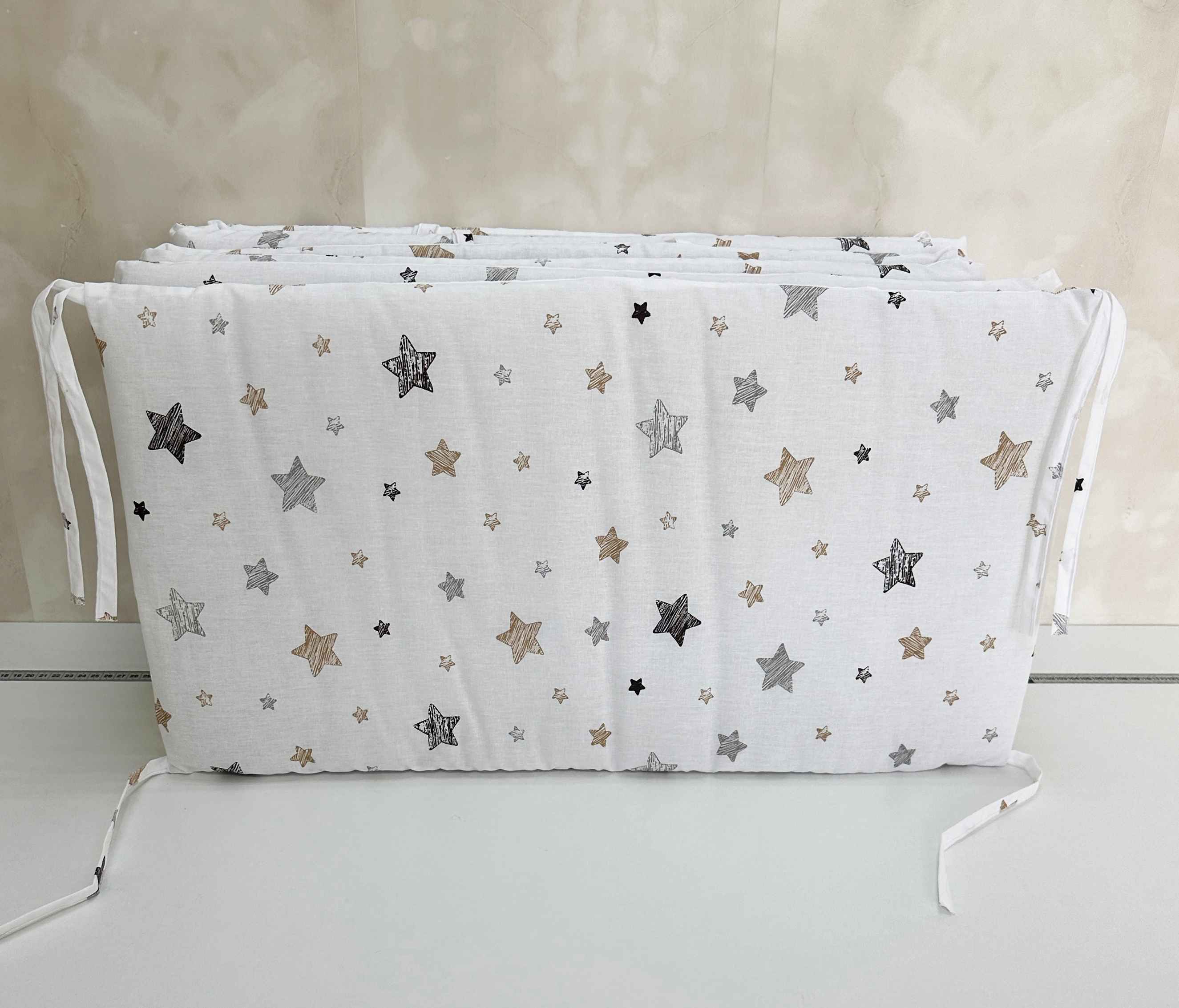 Данный предмет комплекта в кроватку представляет собой уплотнители, которые фиксируются на стенках детской кроватки с внутренней стороны. Существует две стороны покупателей, одни считают, что бампер в кроватку для новорожденных мешает поступлению воздуха к ребенку, а также препятствует его обзору, то есть ребенок не может следить за происходящим вокруг него. Еще один аспект – это убеждение в том, что бортик собирает пыль, которая может негативно отразиться на здоровье малыша. Мнения другой стороны, напротив, уверены в их необходимости. Они считают, что бортики в кроватку для новорожденных обеспечат безопасность их малышу.