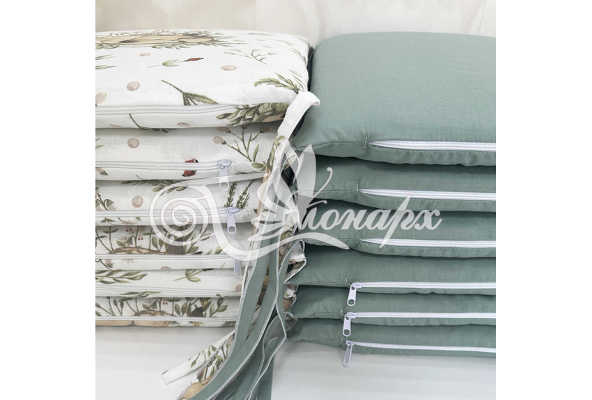 Бортики СО СЪЕМНЫМИ ЧЕХЛАМИ в кроватку: защитят Вашего малыша от ушибов, сквозняков, солнечных лучей и не дадут малышу запутаться в прутьях кроватки.