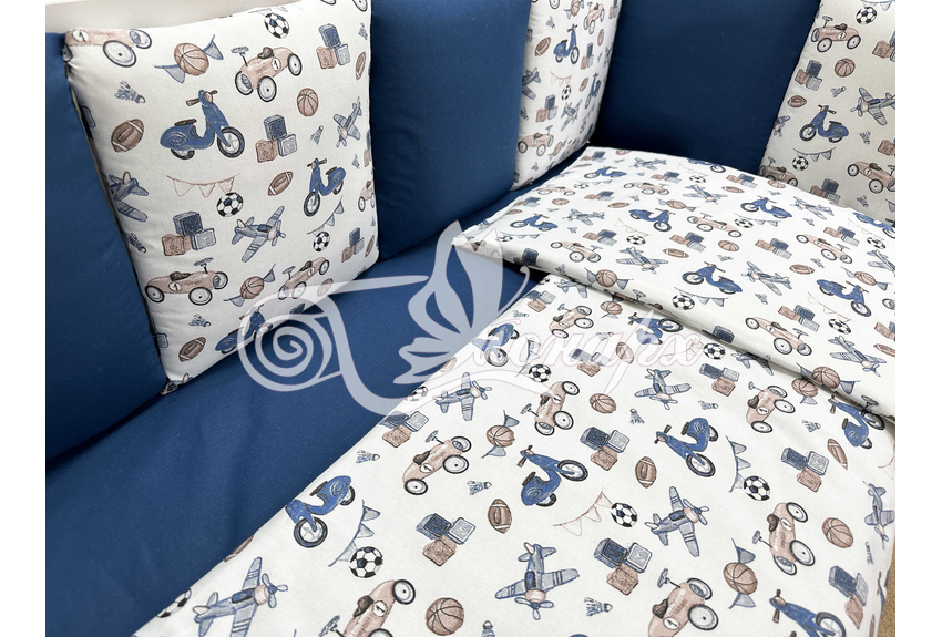 Бортик составной: 12 подушек 31х34 см на замочках упакованы в сумку-переноску.