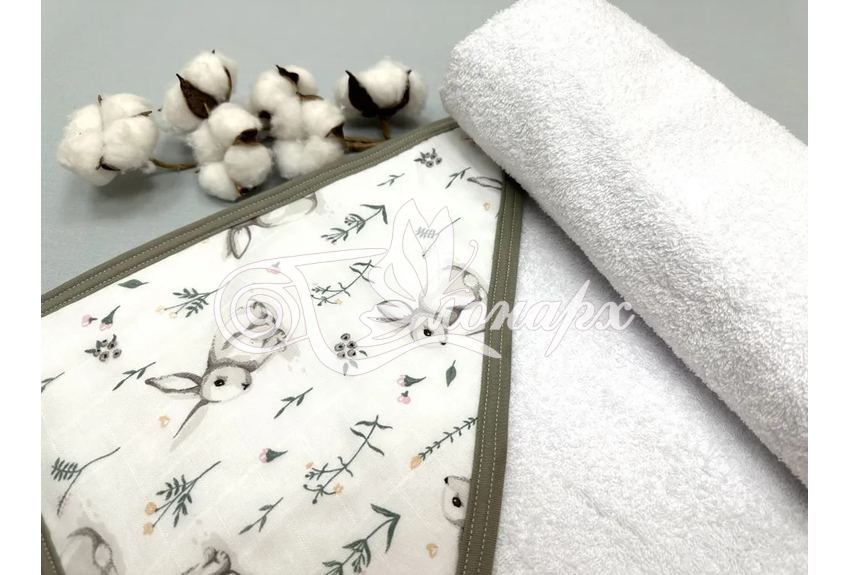 Махра и муслин - идеальное сочетание материалов. Обе ткани тактильно приятные, прекрасно впитывают воду.