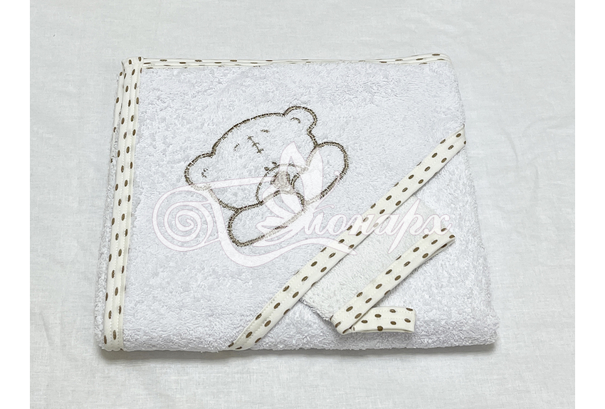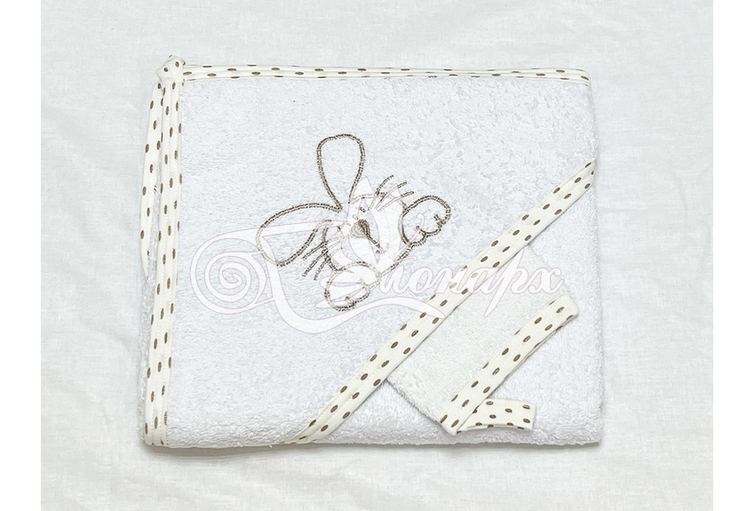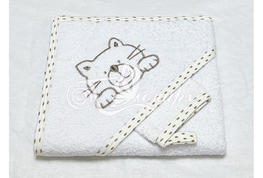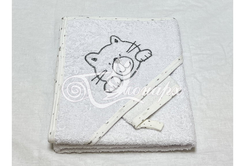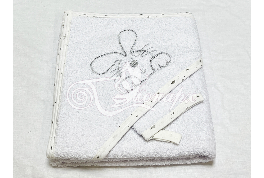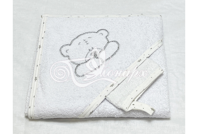 Полотенце с капюшоном и рукавичкой Вышивка (белый)