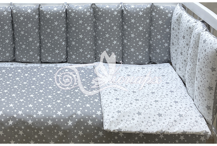 Бортики на замочках в кроватку: защитят Вашего малыша от ушибов, сквозняков, солнечных лучей и не дадут малышу запутаться в прутьях кроватки.
