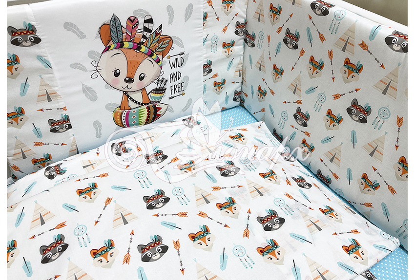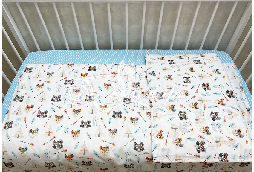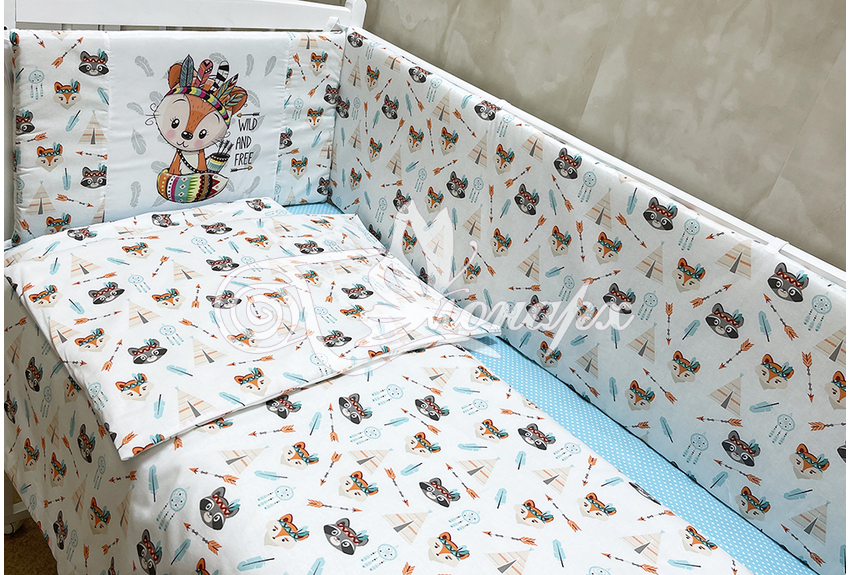 Бортики СО СЪЕМНЫМИ ЧЕХЛАМИ в кроватку: защитят Вашего малыша от ушибов, сквозняков, солнечных лучей и не дадут малышу запутаться в прутьях кроватки. - Простыня на резинке 60х120 см (подходит для стандартной кроватки)