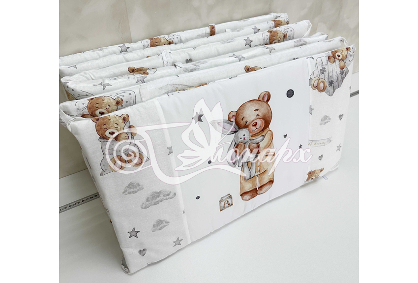 Бортики СО СЪЕМНЫМИ ЧЕХЛАМИ в кроватку: защитят Вашего малыша от ушибов, сквозняков, солнечных лучей и не дадут малышу запутаться в прутьях кроватки. - Простыня на резинке 60х120 см (подходит для стандартной кроватки)