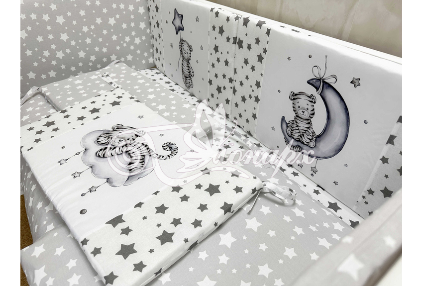 Бортики СО СЪЕМНЫМИ ЧЕХЛАМИ в кроватку: защитят Вашего малыша от ушибов, сквозняков, солнечных лучей и не дадут малышу запутаться в прутьях кроватки. - Простыня на резинке 60х120 см (подходит для стандартной кроватки)