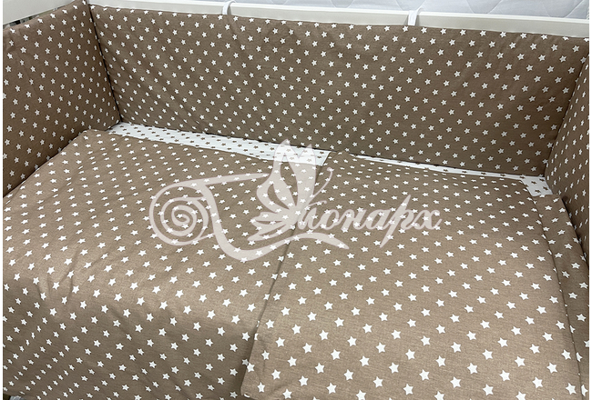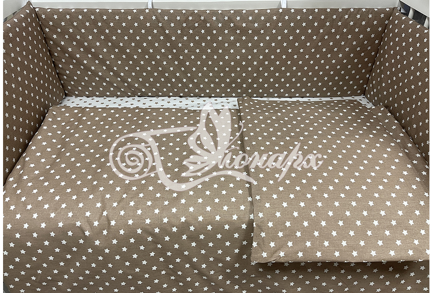 Бортики СО СЪЕМНЫМИ ЧЕХЛАМИ в кроватку: защитят Вашего малыша от ушибов, сквозняков, солнечных лучей и не дадут малышу запутаться в прутьях кроватки. - Простыня на резинке 60х120 см (подходит для стандартной кроватки)